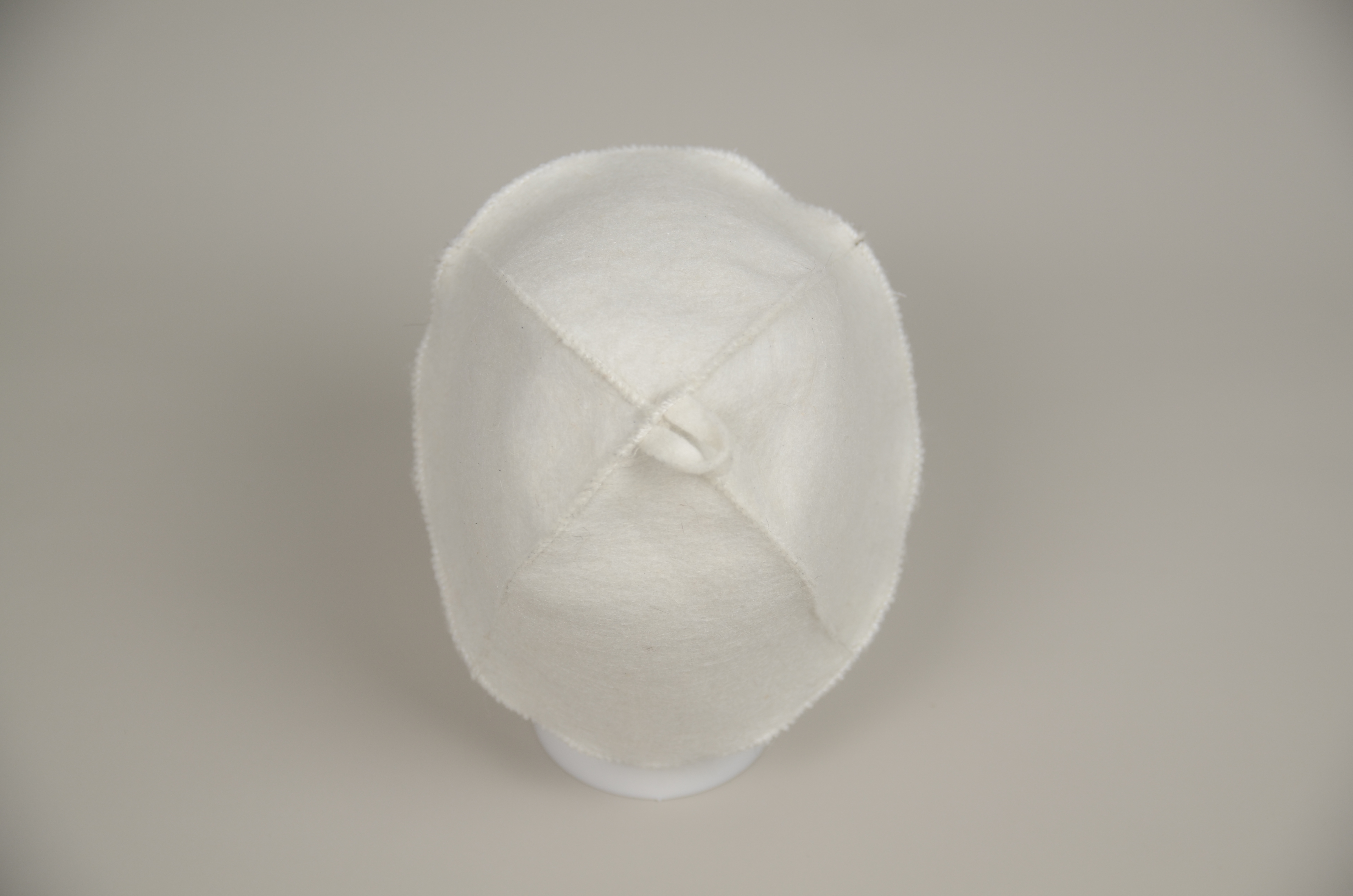 2. Шапка банная фетровая с мехом натуральной овчины. Внутренняя часть шапки: 100% натуральный мех овчины, наружная часть шапки: фетр, размер универсальный: 56-60. Имеет наружную и внутреннюю петли для сушки изделия.