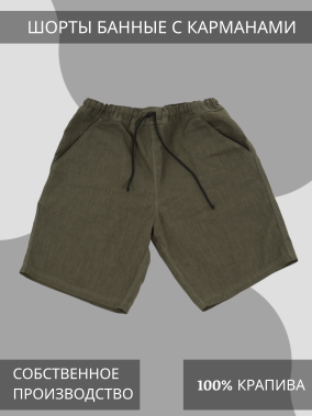 Легкие и удобные шорты из ткани Крапива с двумя прорезными карманами.