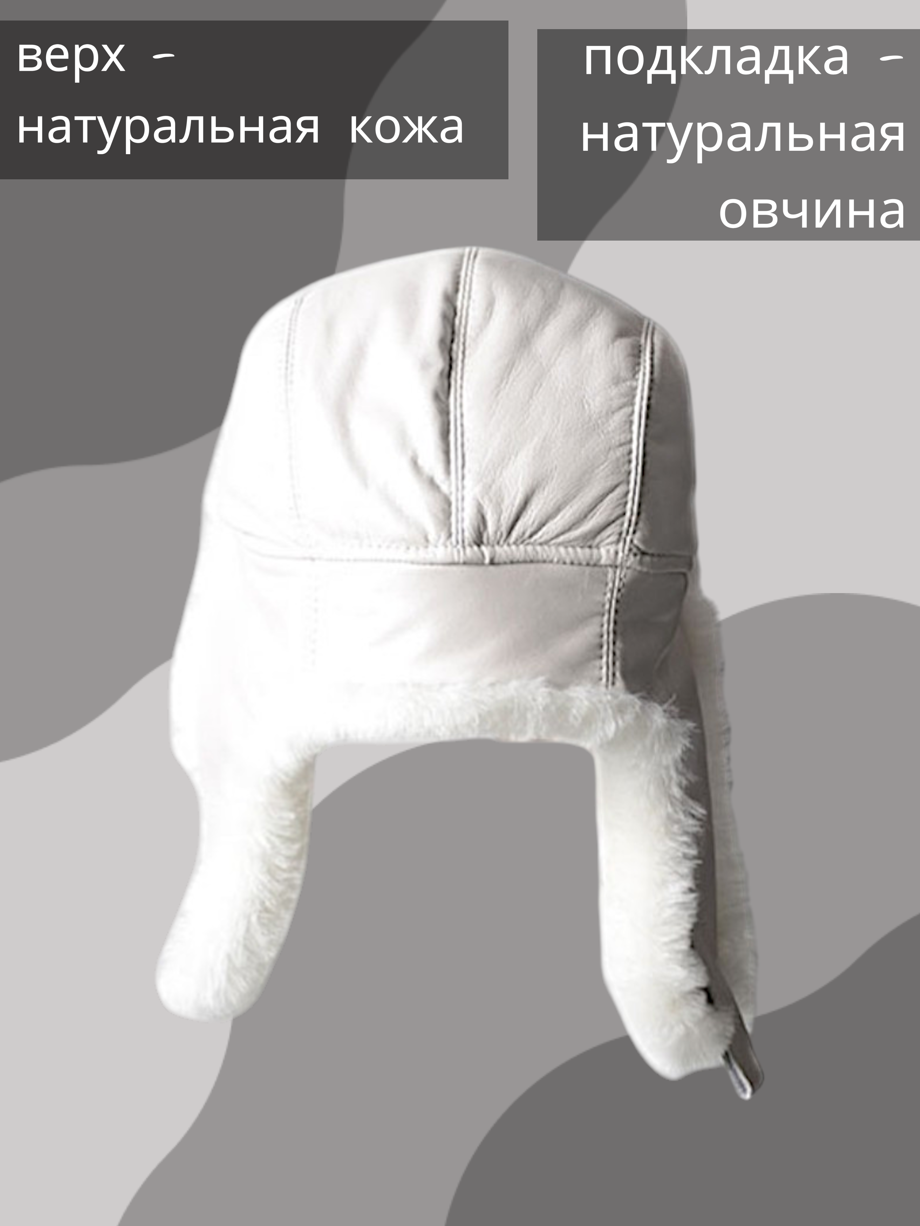 - шапка покрыта натуральной овечьей кожей белого цвета;