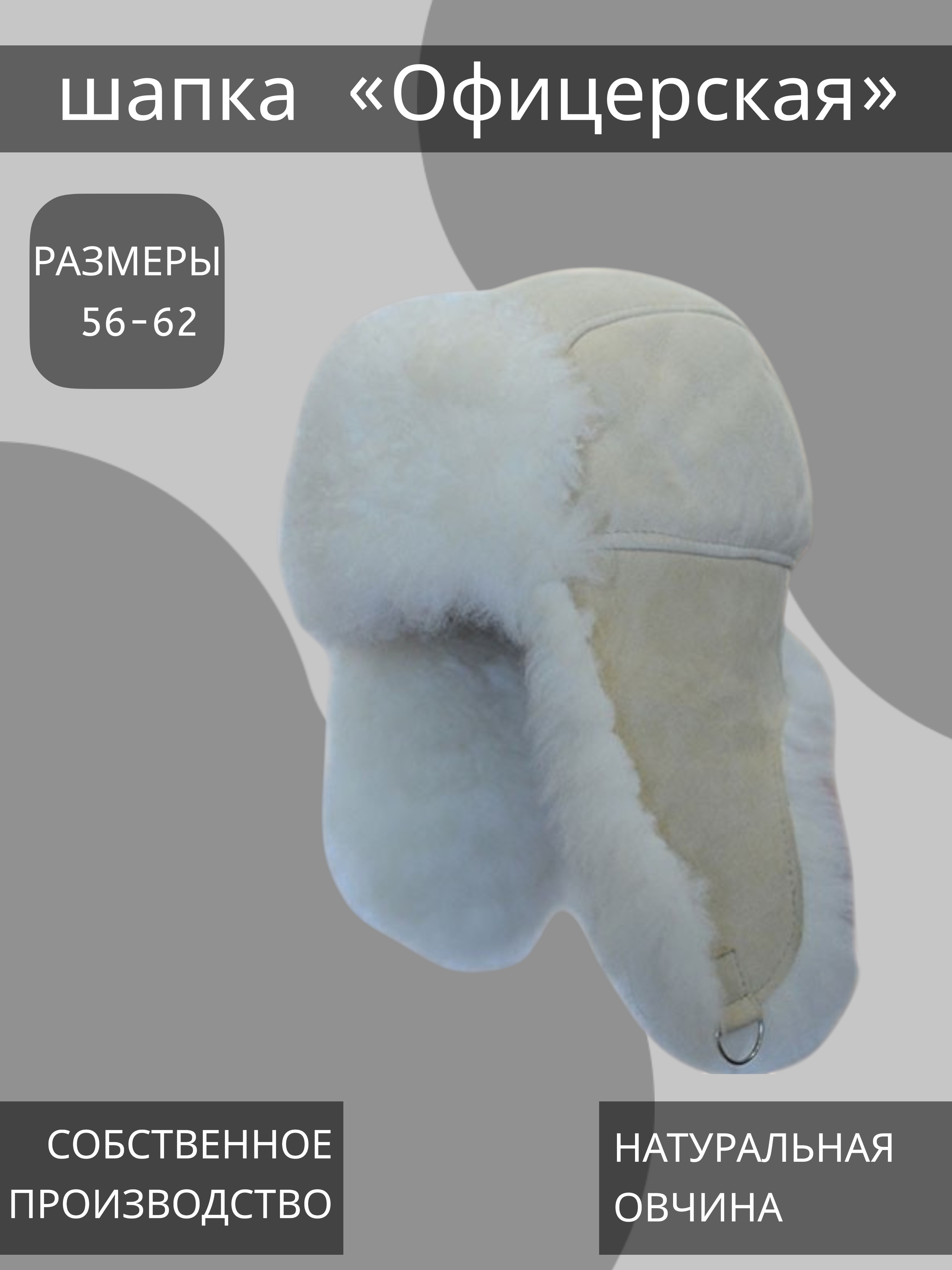 Характеристики мужской шапки из дубленочной овчины- надежная морозостойкая регулируемая застежка с металлической рамкой, позволяющая фиксировать уши шапки под подбородком, либо закрепление ушей вверху с помощью "липучки";