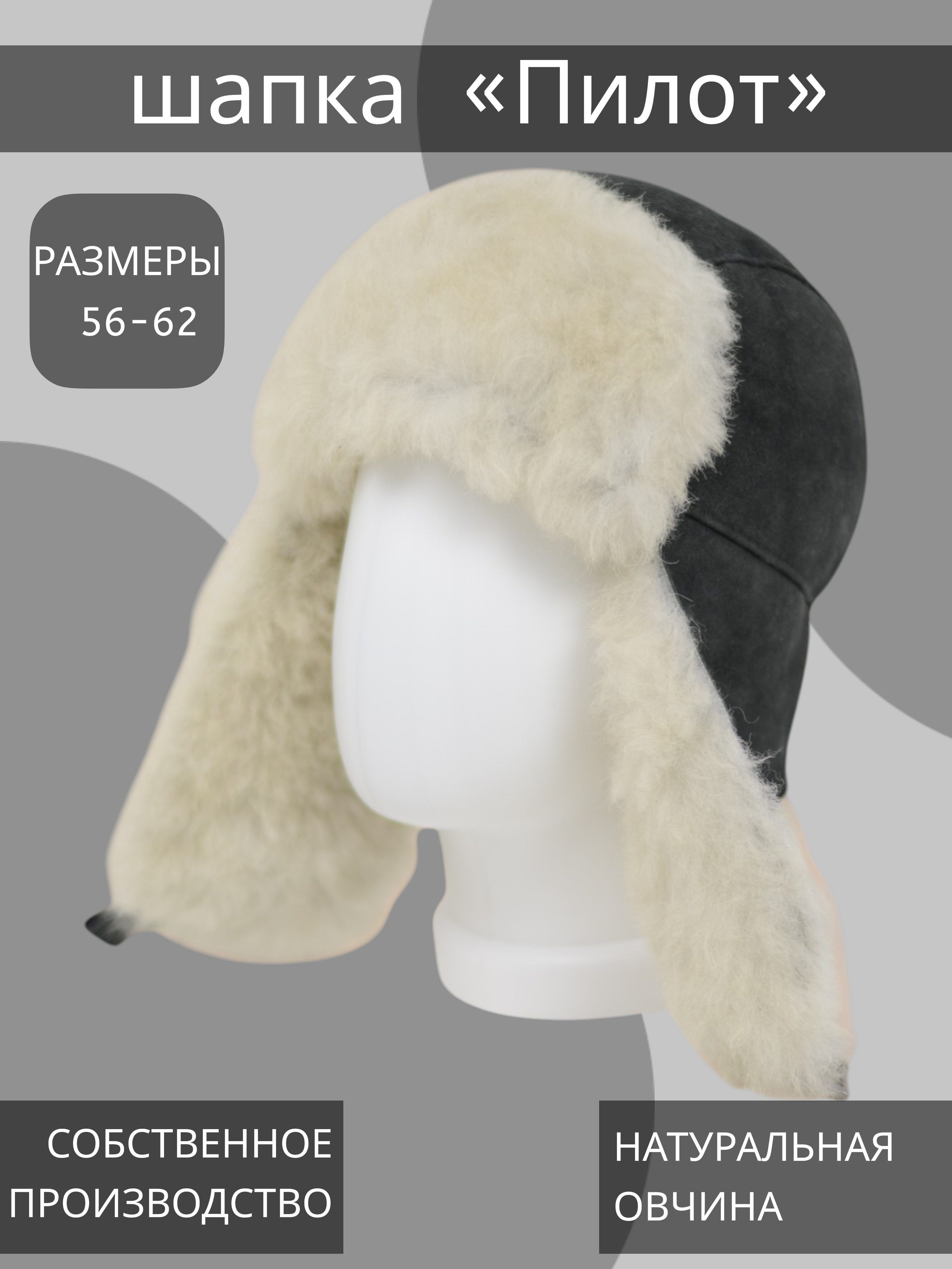 Характеристики мужской шапки из дубленочной овчины- надежная морозостойкая регулируемая застежка с металлической рамкой, позволяющая фиксировать уши шапки под подбородком, либо закрепление ушей вверху с помощью "липучки";