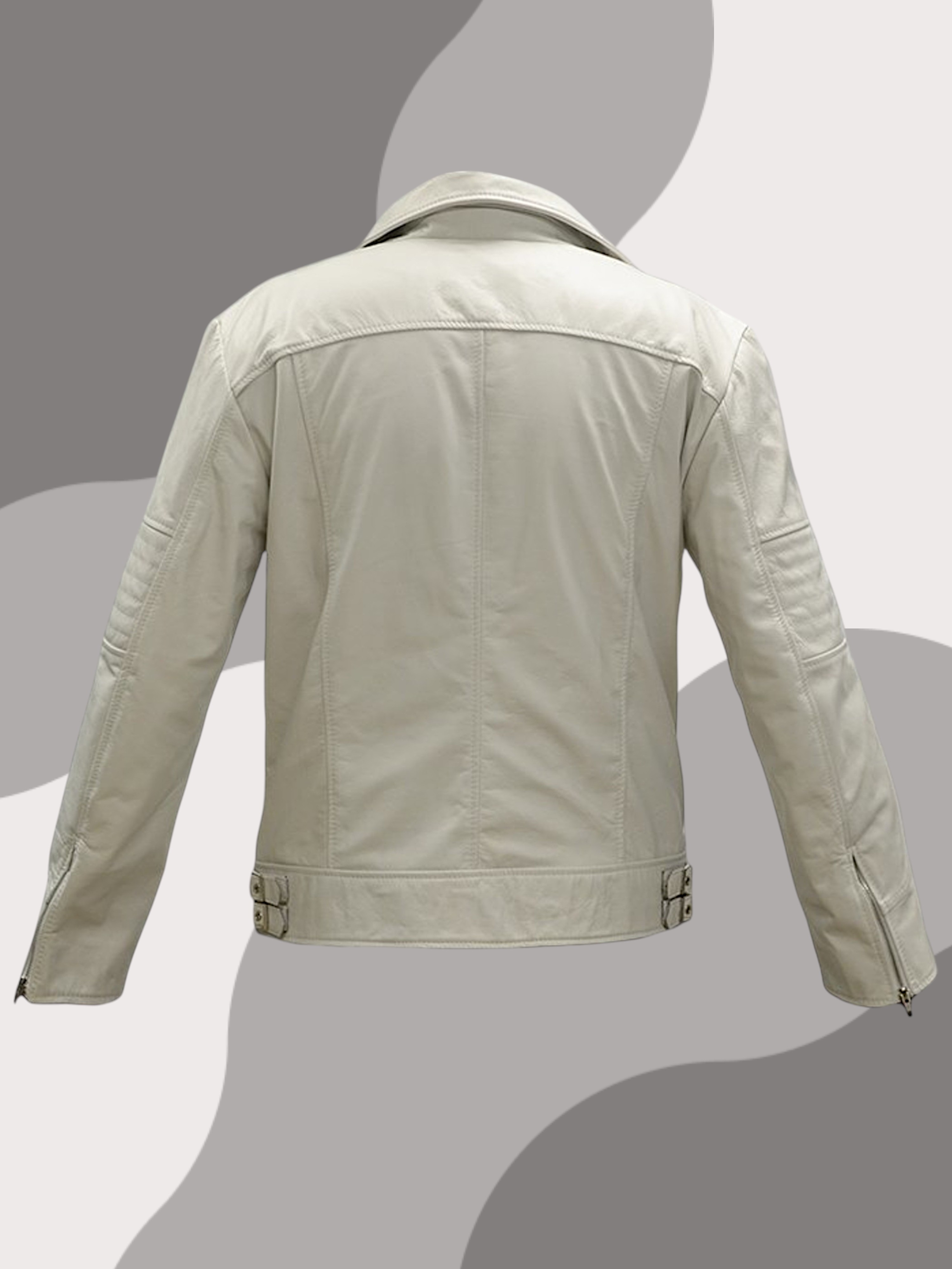 Состав: Кожа КРС белого цвета толщиной 1,2 мм. Молнии: Никелиевые. Подкладка: Вискоза 50%, полиэстер 50%