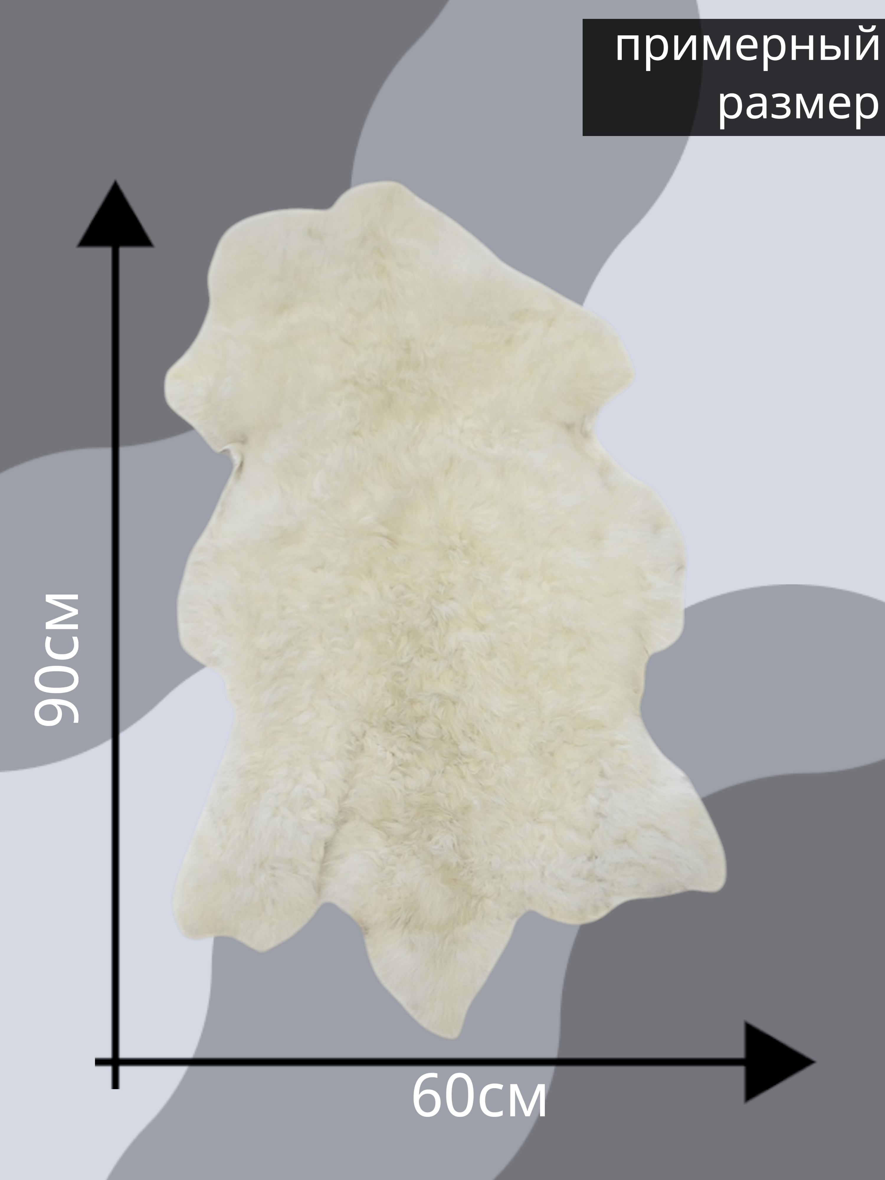Шкура овчины белого цвета , высотой волоса 20-25 мм.  Размер 60*90 см.