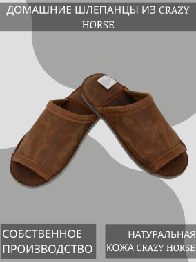 Покрытие: натуральная кожа КРС толщиной 1 мм цвета Crazy Horse,Подошва: мягкий Эвапласт, клиновидной формы толщиной 10 мм в пяточной части и 5 мм в носочной части, серого цвета