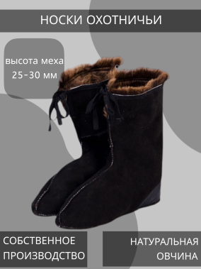 Носки меховые охотничьи ТУ-896507-002-05242417-05- усилительная накладка из ткани в области пятки и окантовка х/б тесьмой предохраняет изделие от преждевременного износа ;