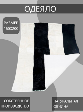 Одеяло меховое из шкур овчины 2-х цветов (размеры одеяла 160*200 см.)- с обратной стороны одеяло покрыто натуральной хлопчатобумажной тканью белого цвета;