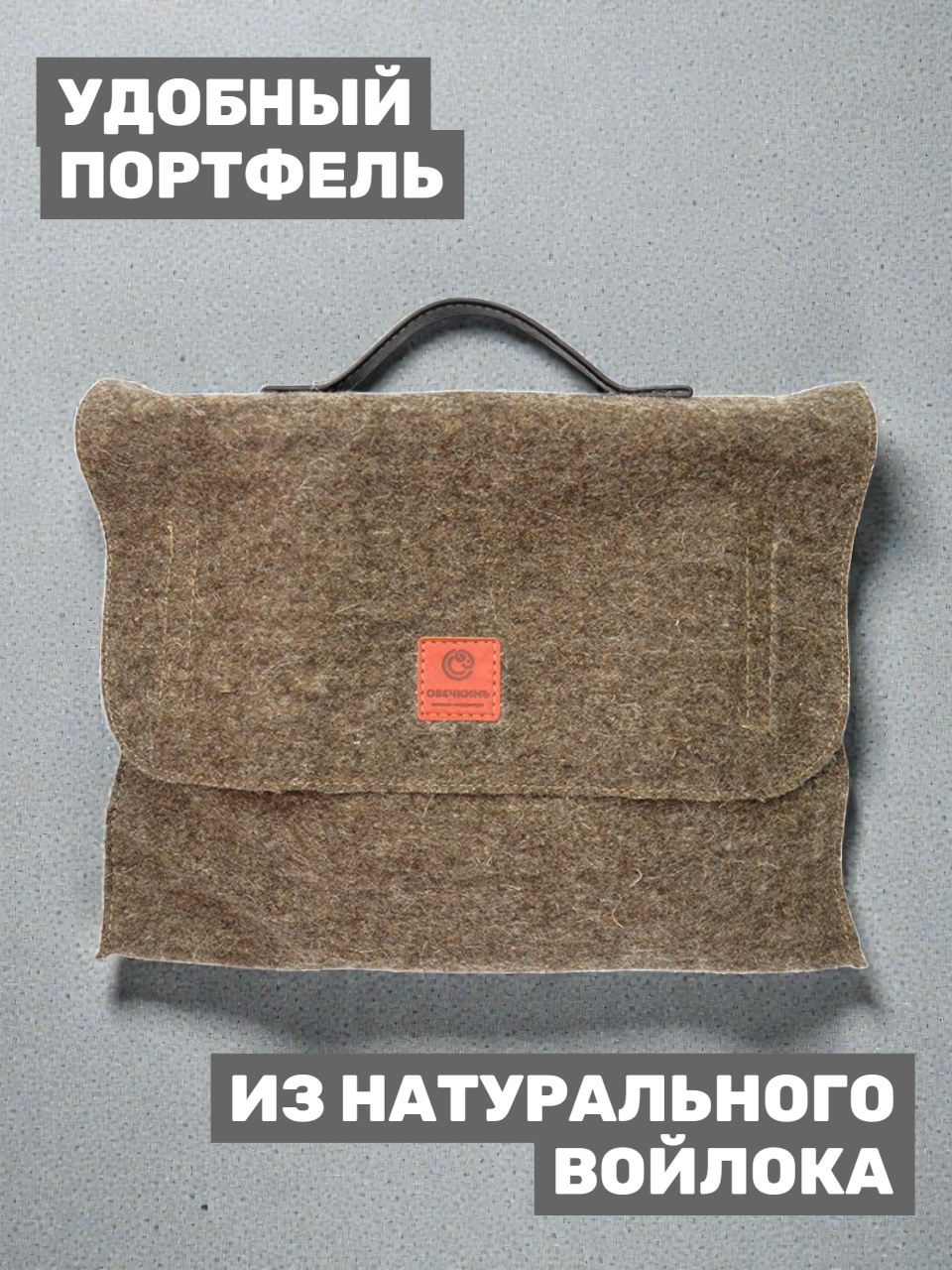 портфель из войлока размером 40/30 см (содержание 90% шерсть) с удобной кожаной ручкой и застежками на липе.