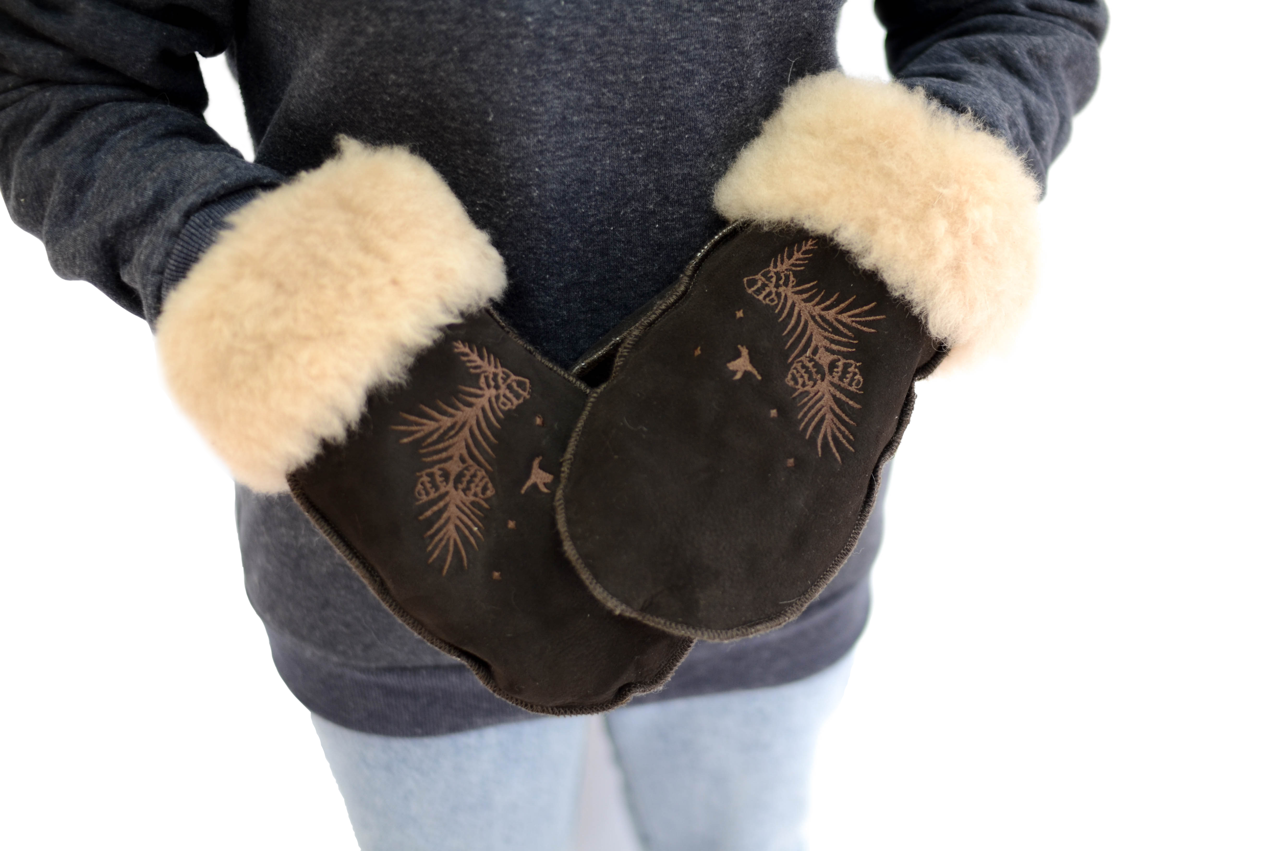 Теплые и мягкие рукавички из натуральной дубленочной овчины с эксклюзивным дизайном