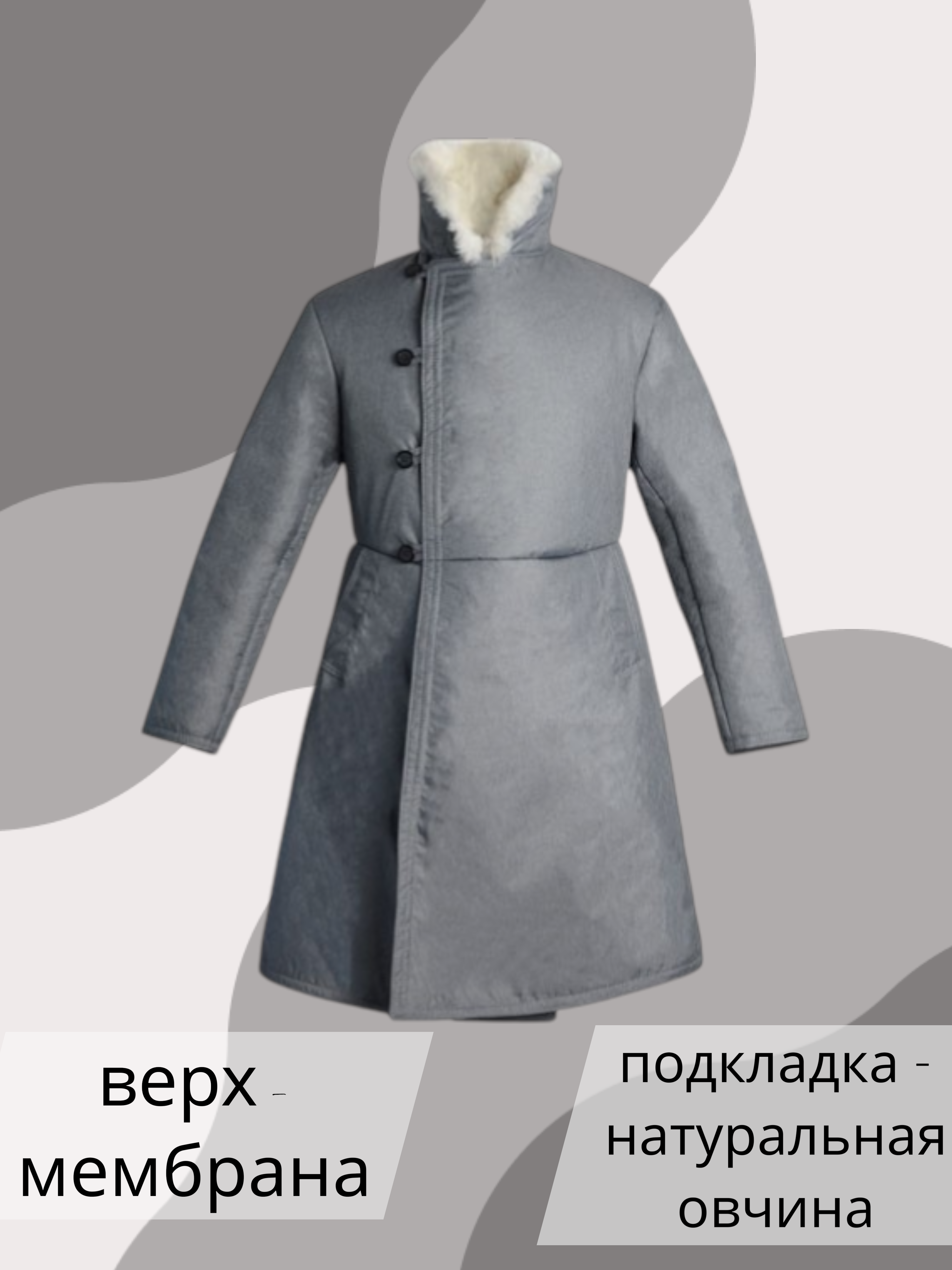 - снаружи бекеша покрыта плотной вертрозащитной тканью.Специальная пропитка делает одежду из ткани ветрозащитной, влагооталкивающей, но при эитом выводящей излишнее тепло из пододежного пространства.