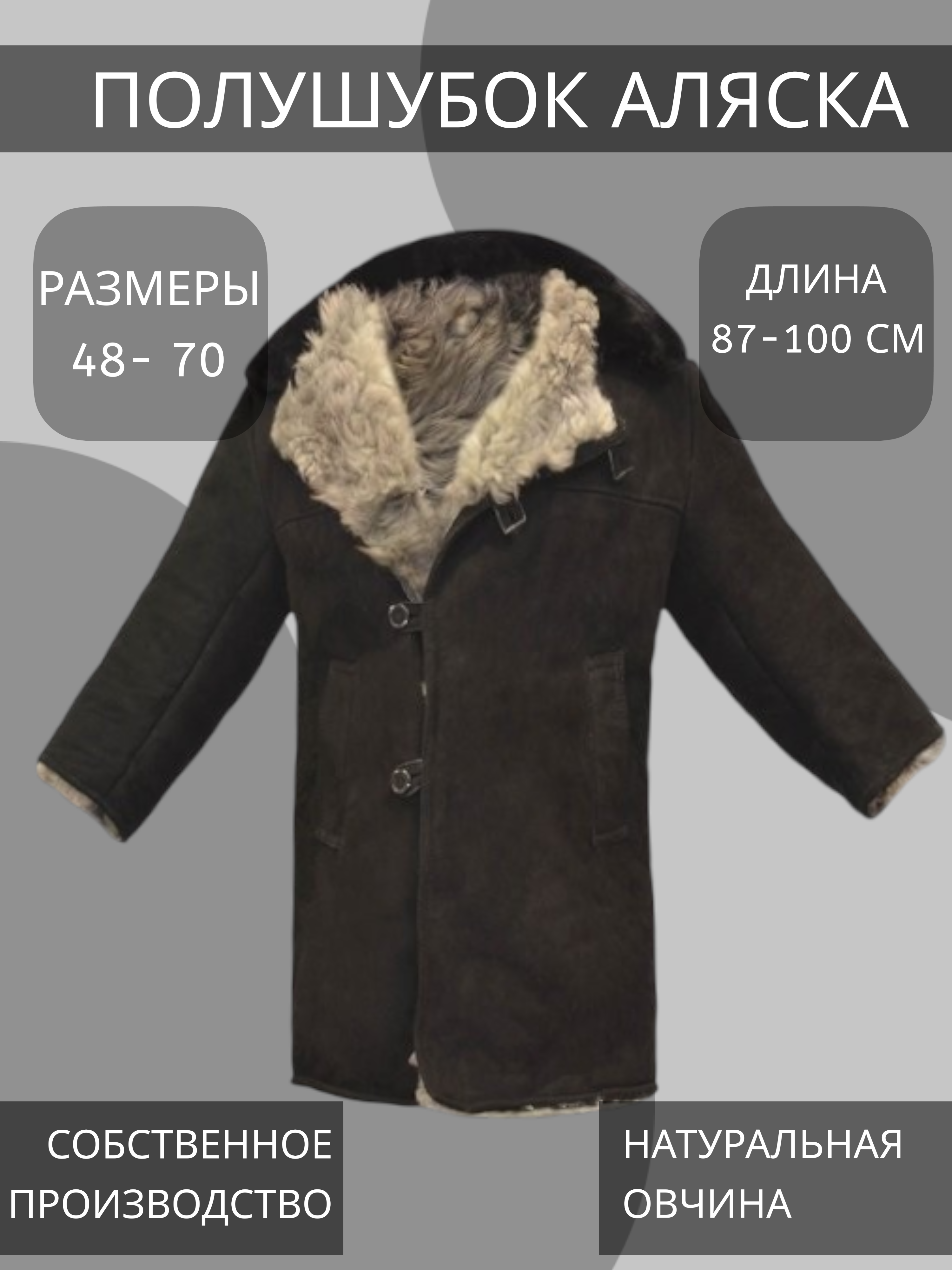 Серия изделий из натуральной овчины "Аляска" для самых суровых морозов из шкур овчины высотой волоса не менее 40 мм.