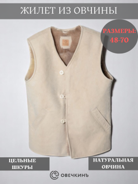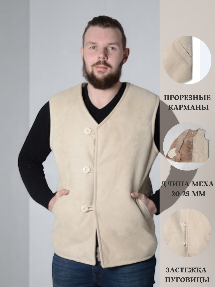 Жилет мужской из дубленочной овчины- использования прямого кроя позволяет с комфортом носить изделие людям с различными типами фигуры и телосложения;