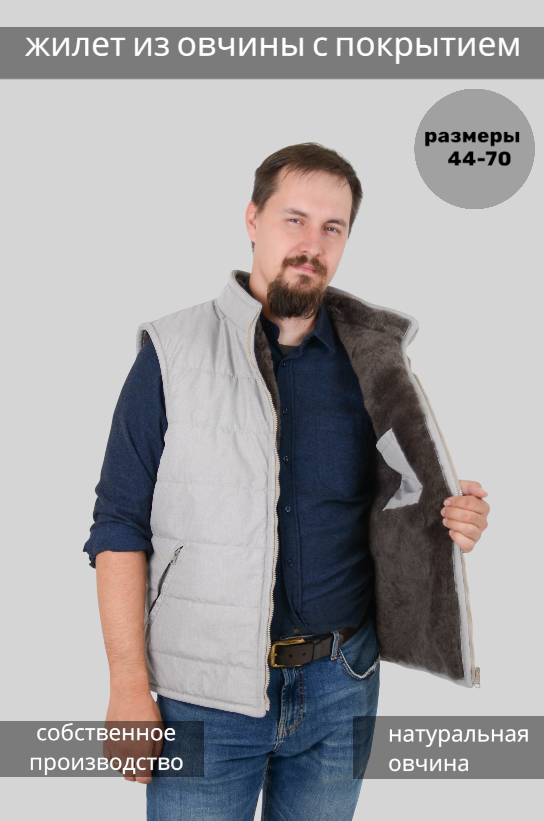 Жилет из натурального меха, покрытый тканью.