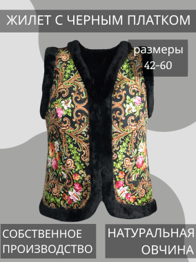 Женский жилет, в русском стиле покрытый платком- Выполнен из натуральной овчины;