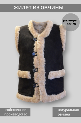 Жилет мужской из дубленочной овчины- использования прямого кроя позволяет с комфортом носить изделие людям с различными типами фигуры и телосложения;