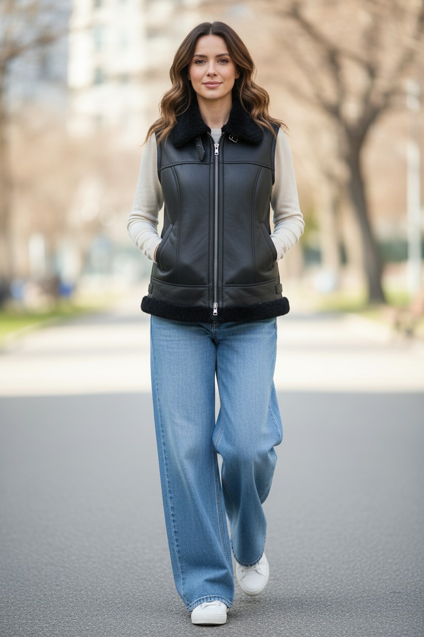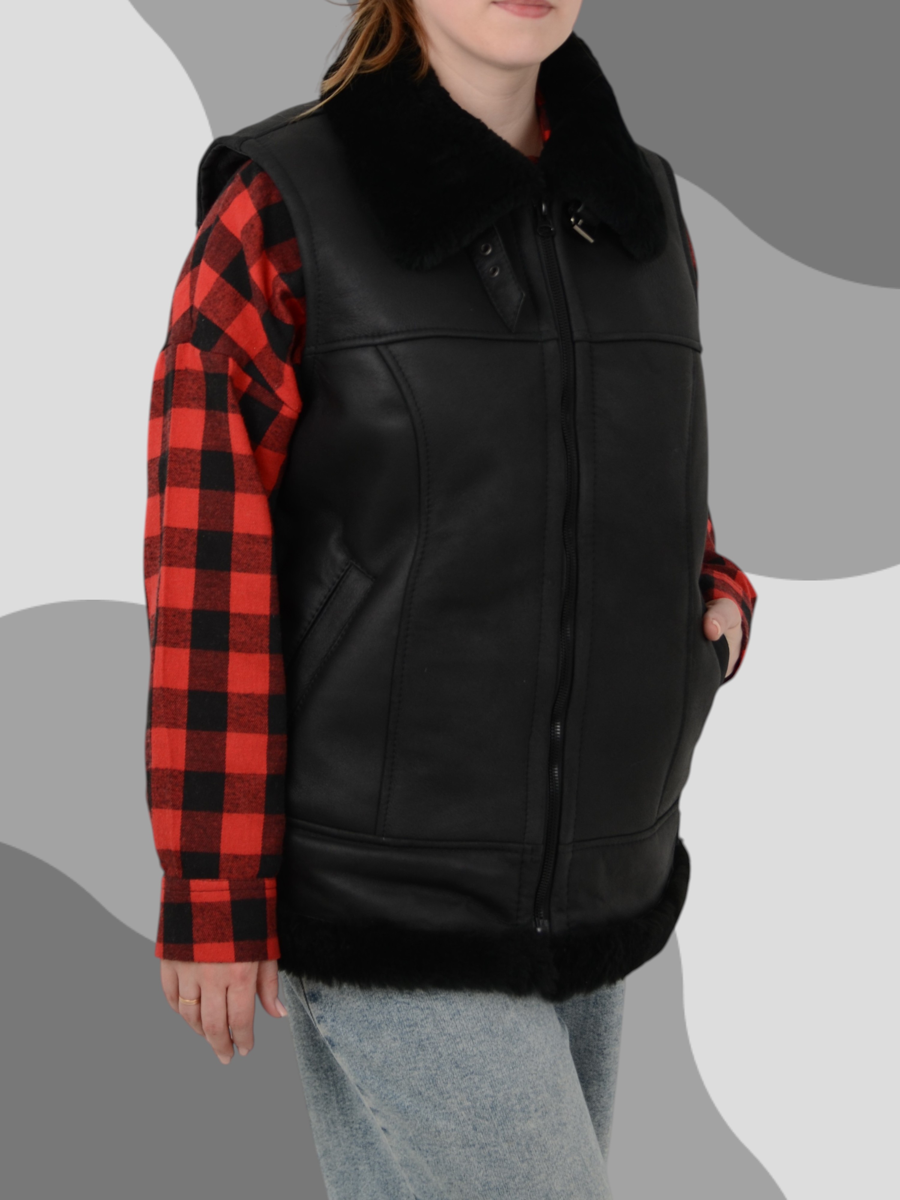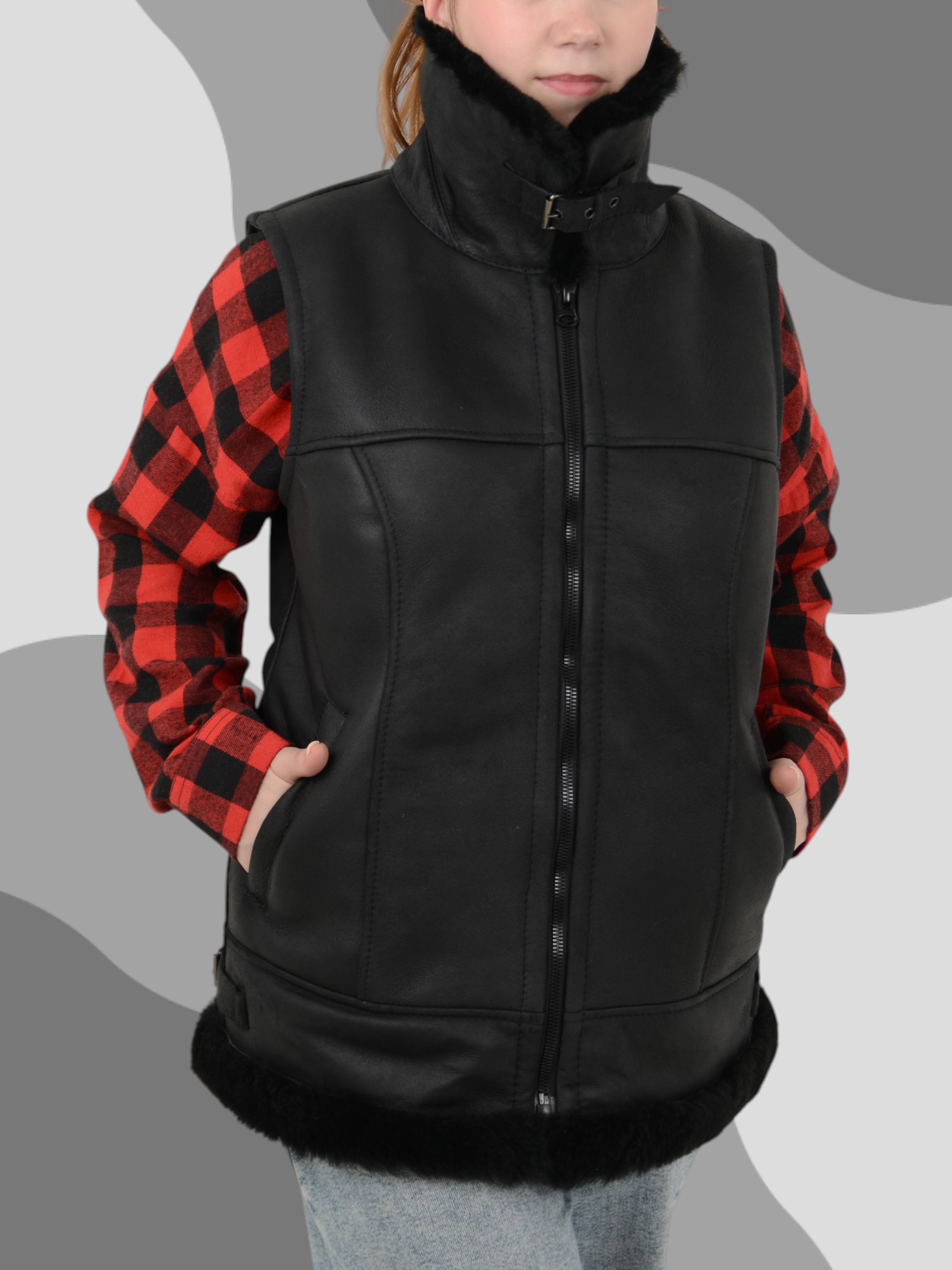 Жилет из натуральной кожи с подкладкой из натуральной овчины
